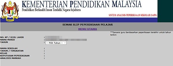Semakan online sistem analisis peperiksaan sekolah (saps) ibu bapa.